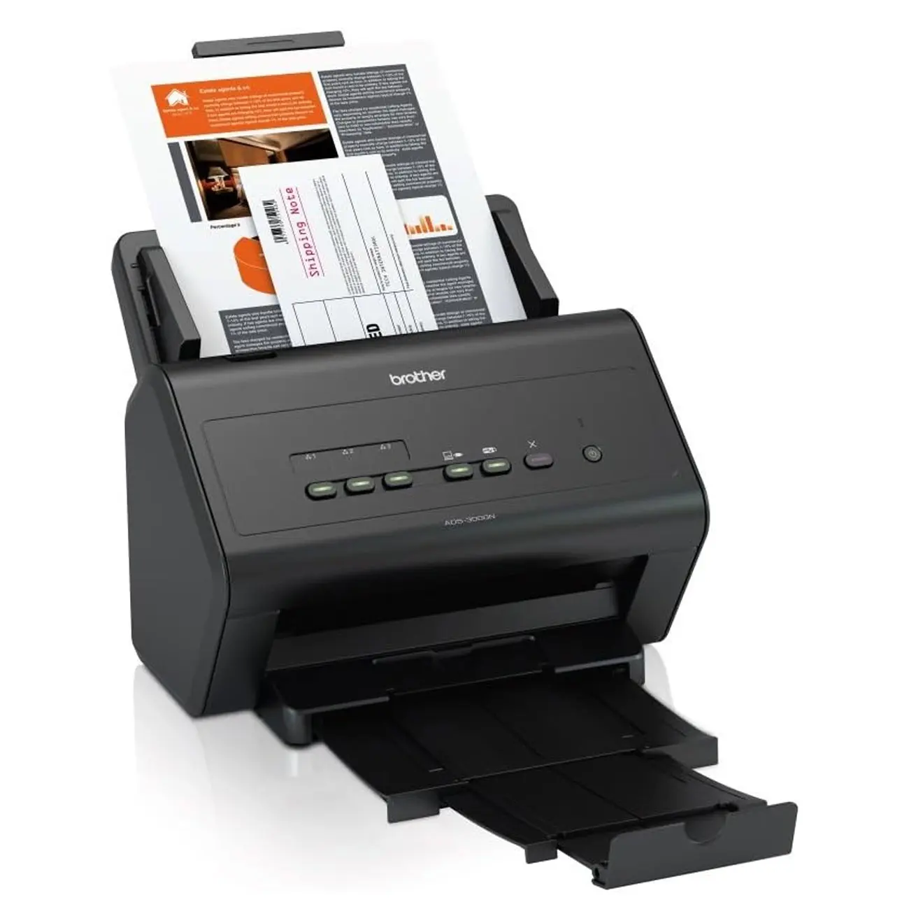 اسکنر ADS-3000N از محصولات شرکت برادر است که مجهز به تکنولوژی اسکن CIS می باشد. اسکنر برادر مدل ADS-3000N دارای ابعاد 306x258x250 میلی متر و وزن 4.5 کیلو گرم است. سرعت اسکن این دستگاه برابر با 50 برگ در حالت رنگی و سیاه و سفید است که این عملیات را با رزولوشن اپتیکال 600x600dpi انجام می دهد.